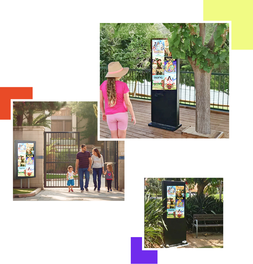 מסכים הממוקמים בסמוך למוסדות החינוך בשיתוף פעולה מלא עם הרשויות המקומיות.